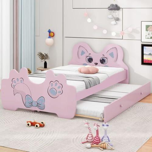 Cat-Shaped Platform Bed with Trundle for Kids
