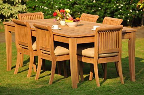 However, while the luxurious craftsmanship is a significant advantage, one potential downside is the absence of outdoor fabric cushions, which can be purchased separately for added comfort. Additionally, while the durability of teak is impressive, it may require occasional maintenance to keep it looking its best. The overall size of the table may not be suitable for smaller patios or balconies. If you’re looking for a spacious and elegant dining solution for your outdoor area, this set could be an excellent choice.
