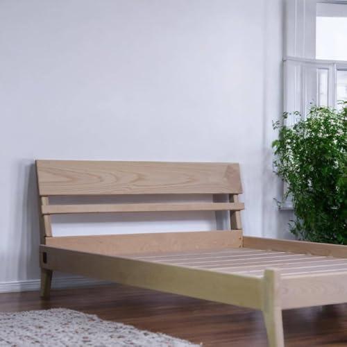This expertly crafted bed frame, made from high-quality wood, is designed to enhance the aesthetics of your bedroom while providing unmatched comfort for a restful night’s sleep. Measuring 64 inches in width, 30 inches in height, and 89 inches in depth, it fits seamlessly into various room layouts. With no need for a box spring thanks to its robust wooden slats, this bed frame offers excellent mattress support, preventing sagging or shifting. The heavy-duty metal slats further enhance its stability, making it suitable for all mattress types, and ensuring a tranquil sleeping experience—perfect for all family members.