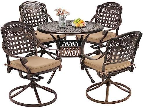 Comfortable Patio Dining Set with Swivel Chairs and Umbrella Hole