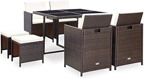 This rattan dining set elevates any outdoor area with its elegant design and practical features. Crafted from durable powder-coated steel frames and weather-resistant PE rattan, it not only promises longevity but also easy handling due to its lightweight construction. The set includes a spacious table paired with four chairs and four stools, complemented by twelve thick, soft, foam-filled cushions that offer exceptional comfort. The cushions come in a water-repellent polyester cover with removable, washable zippered covers, making maintenance a breeze. With dimensions confirming suitable space utilization, this set is ideal for both al fresco dining and relaxing afternoons in the garden.