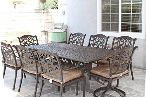 Mandalay Outdoor Patio 9pc Dining Set Dark Bronze Cast Aluminum, Walnut Cushions