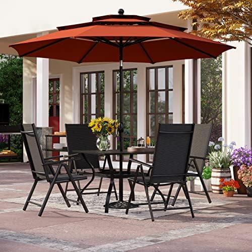 5 Piece Outdoor Patio Dining Set with Adjustable Umbrella and Folding Chairs