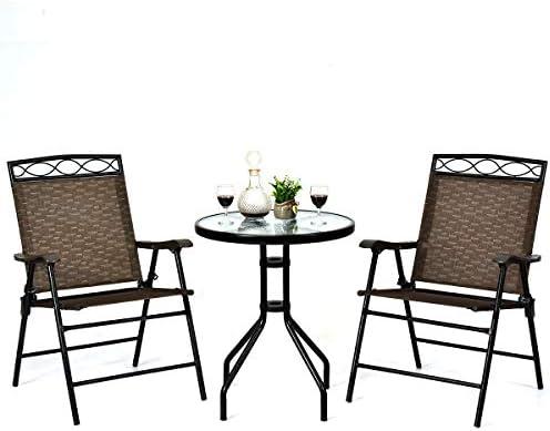 Round Glass Table with Folding Chairs for Outdoor Use