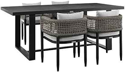 Felicia Outdoor Patio 5-Piece Dining Table Set in Aluminum with Grey Rope and Cushions