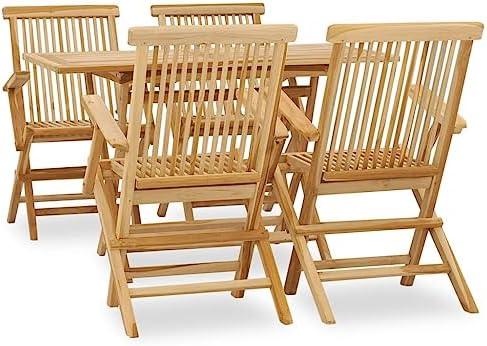 Constructed from solid teak hardwood, this outdoor dining set offers exceptional strength and weather resistance, making it an excellent choice for garden furniture. The fine sanded finish provides a smooth appearance, while its natural durability ensures longevity. With a foldable design, this set is perfect for outdoor camping, picnics, or even just extra seating at home. The rectangular table features a built-in hole for an umbrella, allowing you to enjoy a comfortable dining experience regardless of the weather. Maintenance is a breeze; simply clean it with a damp cloth and apply teak oil for enhanced durability.