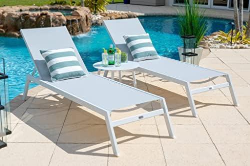AKOYA Outdoor Essentials Juno 3 Piece Chaise Lounge Chair Set in White