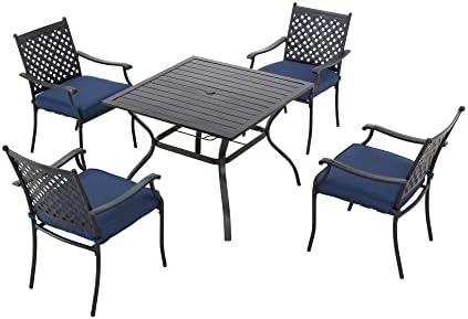 LOKATSE HOME 5 Piece Outdoor Dining Set Patio Chairs Square Table with Umbrella Hole, Blue