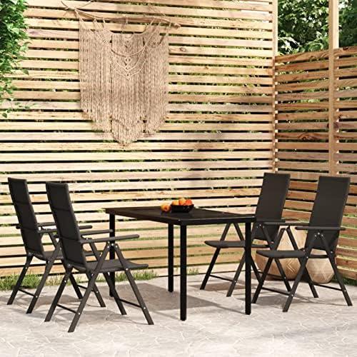 Outdoor Patio Dining Set Metal Furniture Table and Chair with Umbrella Black Modern Contemporary