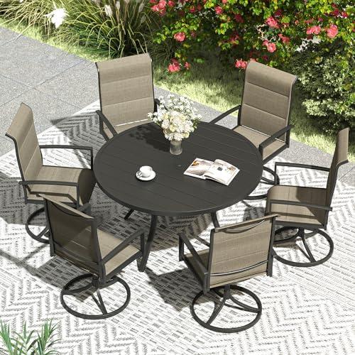 Stylish 7-Piece Outdoor Dining Furniture Set with Round Table and Swivel Chairs