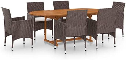 Transform your outdoor space with this elegant seven-piece dining arrangement, ideal for enjoying meals and gatherings in your yard or patio. The sturdy table, constructed from solid acacia wood, offers stability and an appealing natural finish to complement your garden aesthetic. Accompanying the table are six weatherproof chairs crafted with durable PE rattan and a robust steel frame, both of which resist the elements, ensuring longevity. Comfort is prioritized with thick padded cushions that enhance the seating experience, making it a perfect choice for relaxing moments outdoors.