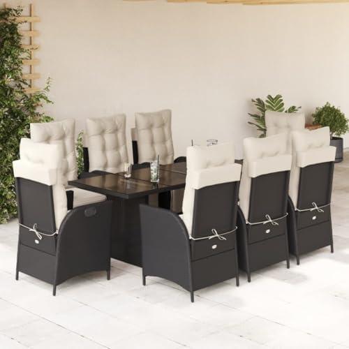 Elegant Black Outdoor Dining Set with Cushions