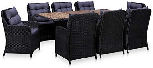 The outdoor dining set combines sophistication with functionality, making it an ideal choice for enhancing your garden or patio space. Made from weather-resistant poly rattan and a durable powder-coated steel frame, this furniture set boasts both style and longevity. The solid acacia wood tabletop adds a rustic charm, while the thick, soft cushions and back pillows ensure maximum comfort for hours of relaxation. With easy-to-clean surfaces and removable cushion covers, maintaining the set’s beauty is a breeze. However, to prolong its life, it’s advisable to cover the furniture set during heavy rain, snow, or frost.