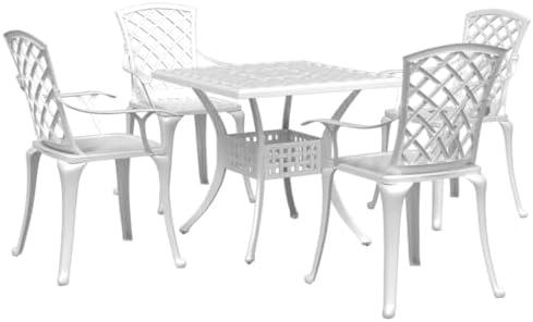 Stylish White Cast Aluminum Outdoor Dining Set with Umbrella Hole