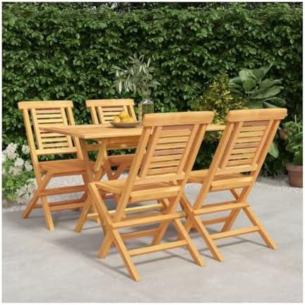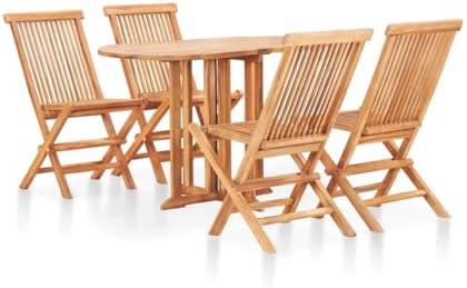 5 Piece Folding Patio Dining Set Solid Teak Wood Brown, Wear Resistant and Practical