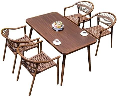 Like any product, this dining set has its pros and cons. Among the benefits are its rust-resistant aluminum frame, easy-to-clean tempered glass surface, and the stylish combination of walnut-colored PE rope that complements various decor styles. However, potential drawbacks include its reliance on glass, which may be more susceptible to cracking compared to traditional materials, and the need for regular maintenance to keep the aluminum frame looking pristine. the balance of aesthetics and functionality makes this dining set a worthy addition to any outdoor space.