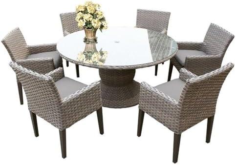 However, while this set is a beautiful addition to any patio, there are a few considerations. The overall weight capacity of the dining table may not be sufficient for larger gatherings if not carefully managed. Additionally, the cushions, while comfortable, may require seasonal storage to maintain their quality. Nonetheless, the use of resort-grade materials assures durability against various weather conditions.