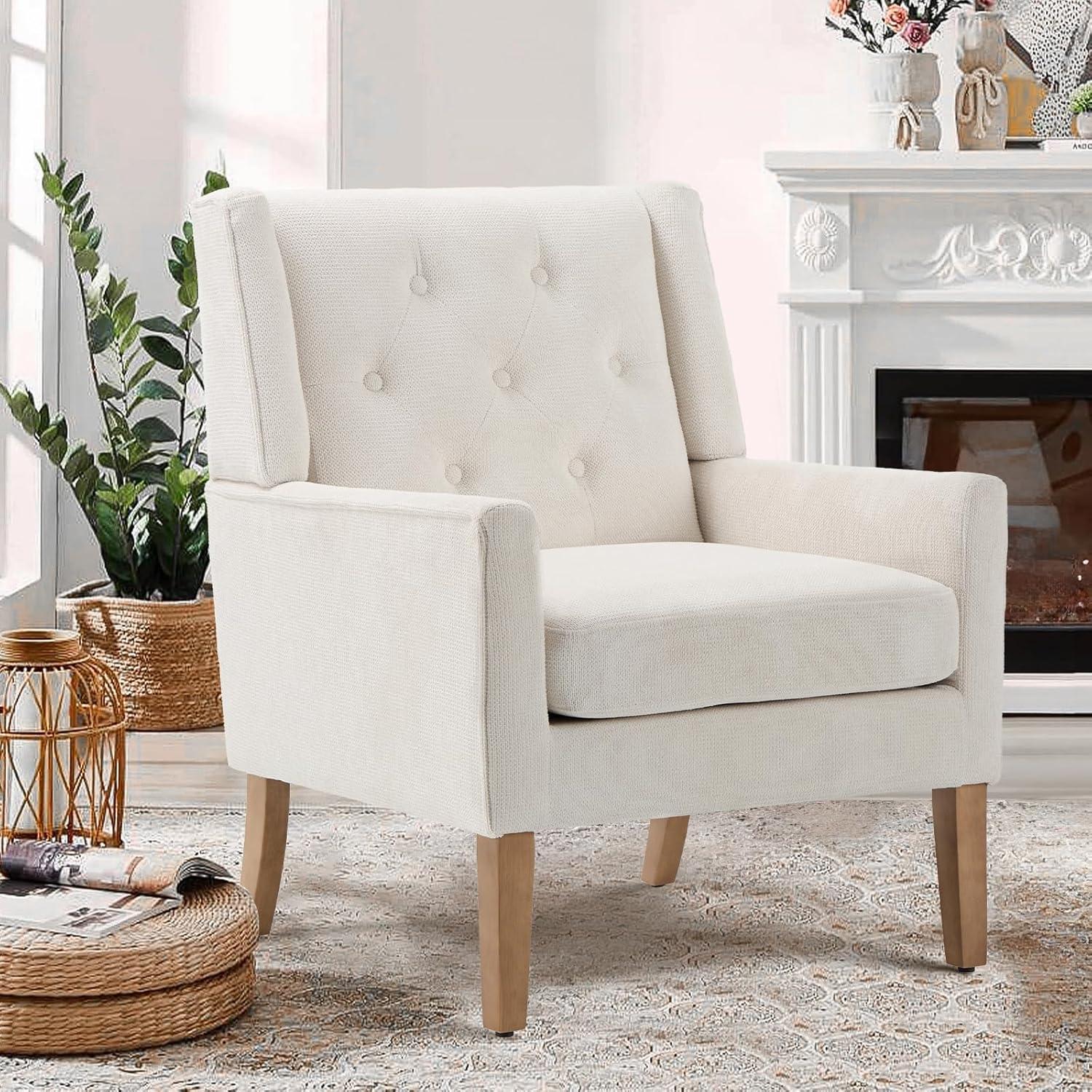 This stylish accent chair combines mid-century elegance with modern comfort, featuring a refined button-tufted backrest and robust wood legs. It is designed to seamlessly fit into various settings—be it a cozy corner in your bedroom,a chic spot in your office,or an inviting space for reading.The high-density sponge cushioning provides exceptional comfort, allowing hours of relaxation while elegantly enhancing your living space’s decor.
