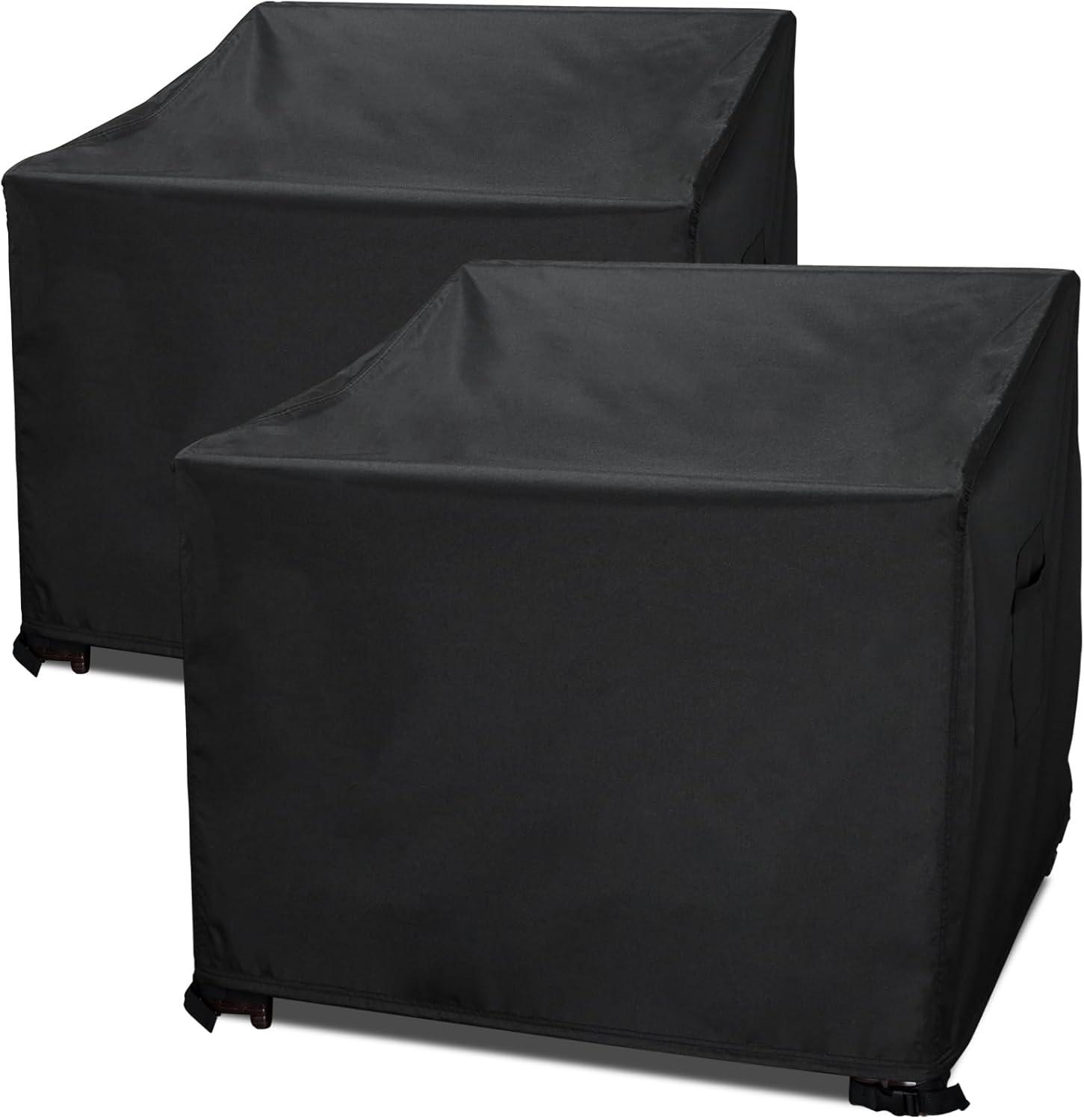These covers are crafted from high-quality 600D heavy-duty Oxford fabric and feature a waterproof PVC coating, ensuring your outdoor chairs are safeguarded against rain, sun, and snow. The added UV-stabilized coating helps protect the furniture from sun damage, while the double-stitched seams enhance durability and tear resistance.Designed to fit dimensions of 32″ W × 37″ D × 36″ H, they are spacious enough to fit a variety of chair types. The adjustable cord lock closure and four click-close straps offer a secure fit, preventing the cover from blowing away in windy conditions. Easy to clean with just a wipe, these covers simplify maintenance, ensuring your outdoor space remains pristine.