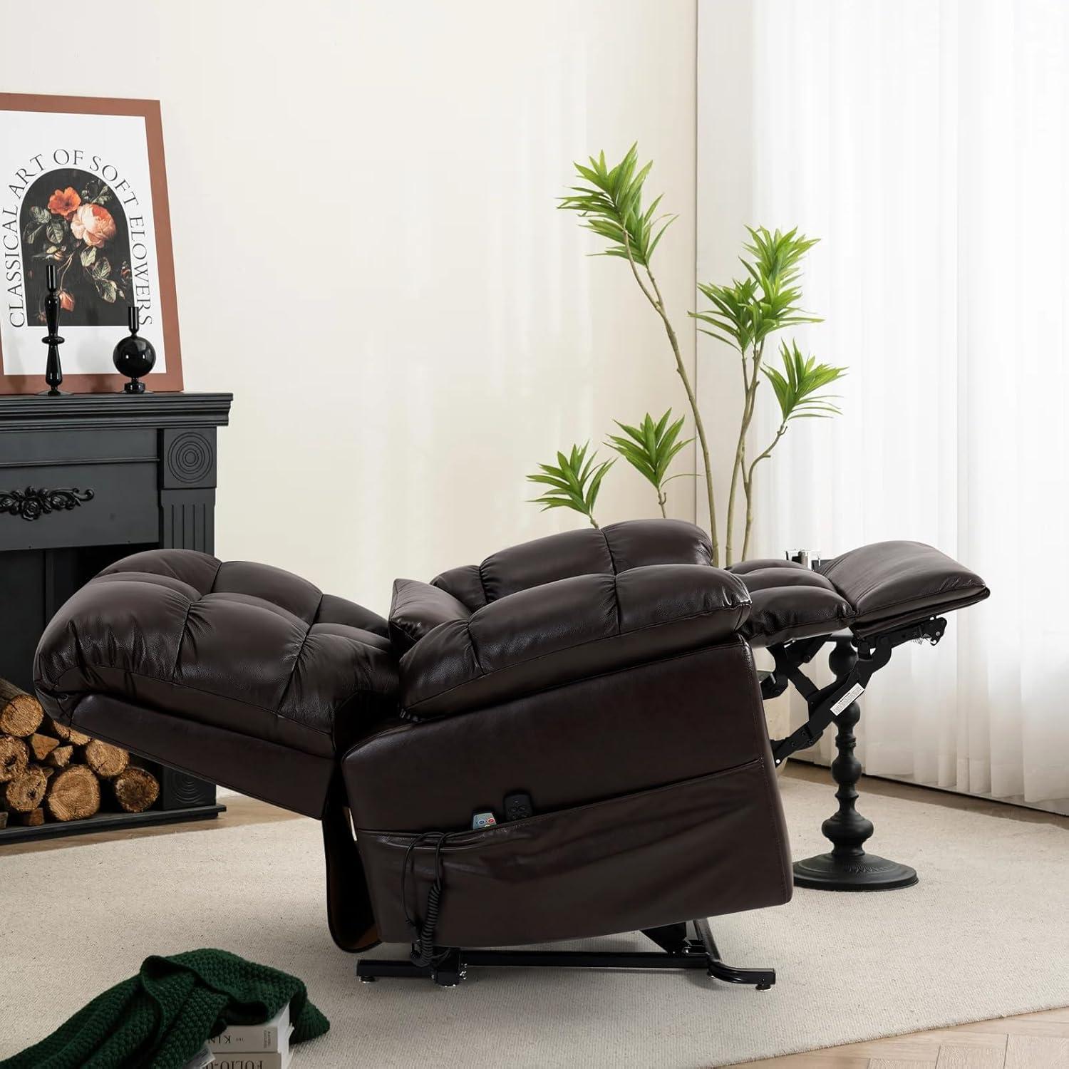 This reclining chair is designed with the needs of the elderly in mind,offering a combination of heating and massage functions that help enhance relaxation. Its overstuffed backrest and cushions provide substantial support,making it ideal for prolonged sitting.The chair features four massage zones, targeting the shin, thigh, lumbar, and shoulder areas, allowing users to unwind after a tiring day. With a weight capacity of 300 lbs and a sturdy metal frame rated for 25,000 uses, it ensures longevity and reliability, as well as easy operation with its silent lift motor for standing assistance.