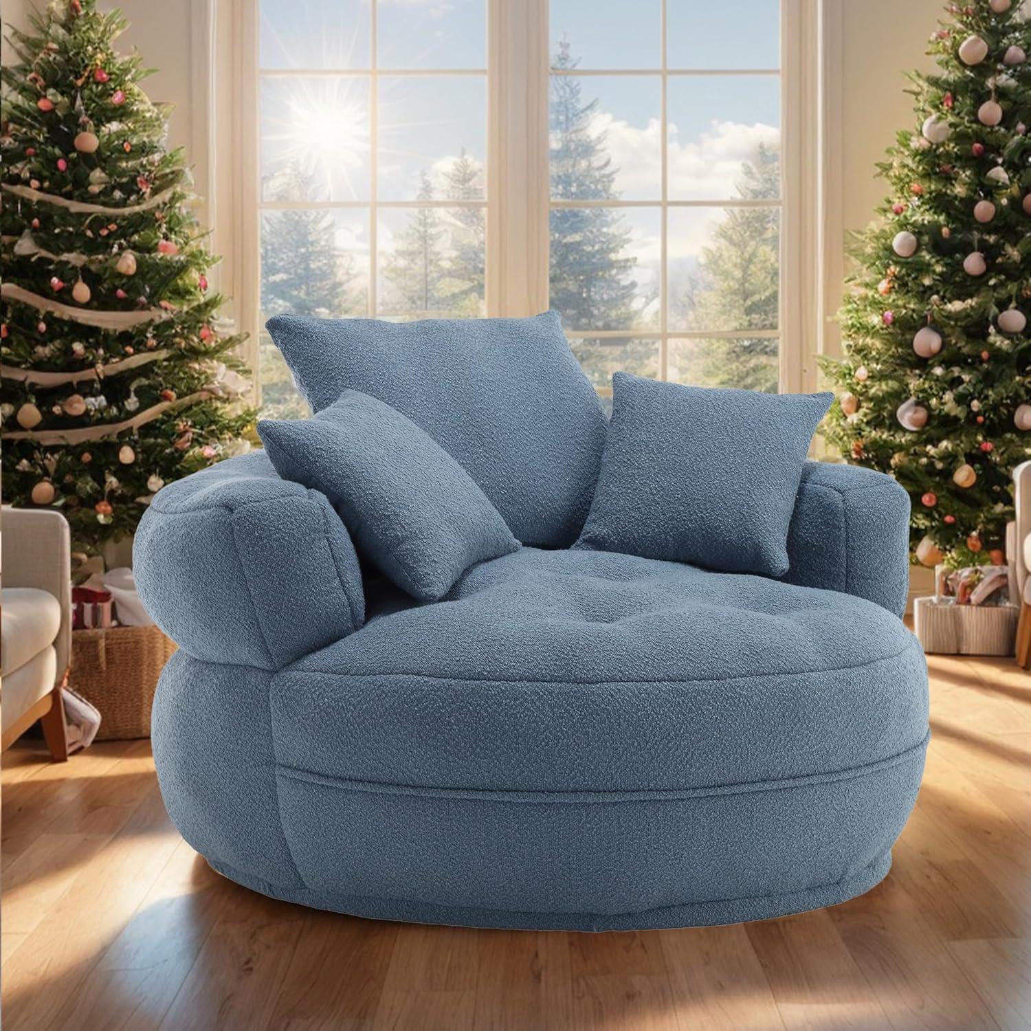 This modern round accent chair seamlessly blends style and comfort, making it a great addition to any living room, nursery, or bedroom. Featuring a soft and luxurious chenille fabric,it offers a tactile experience that’s pleasing to the touch. The high-density foam seat cushion ensures excellent support for prolonged sitting, making it ideal for relaxing with a book or enjoying a cozy chat with friends. Its 360-degree swivel feature allows easy movement without the need to stand up,enhancing convenience in various spaces.
