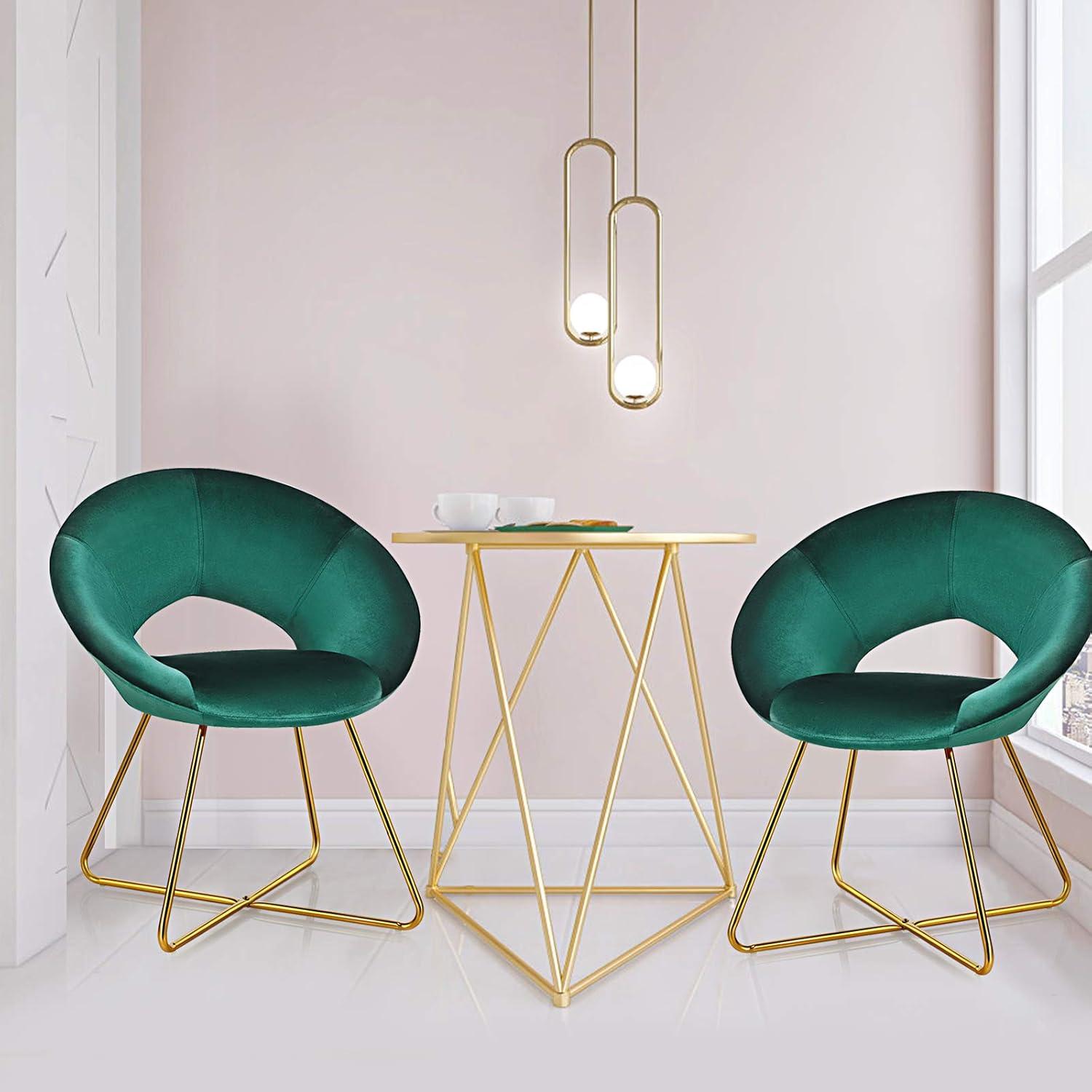 The beautifully designed accent chairs boast a modern glam aesthetic,featuring a unique open backrest for improved ventilation and visual appeal. Supported by a sturdy cross-shaped metal structure,these chairs can comfortably accommodate up to 300 lbs,ensuring stability and safety during use.The sleek metal tube legs come with a golden finish, adding a touch of elegance to your living space. Ideal for a variety of settings such as the living room, bedroom, or even office spaces, these chairs blend style with functionality effortlessly. Their anti-slip foot pads further ensure that your floors remain scratch-free, enhancing their practicality.