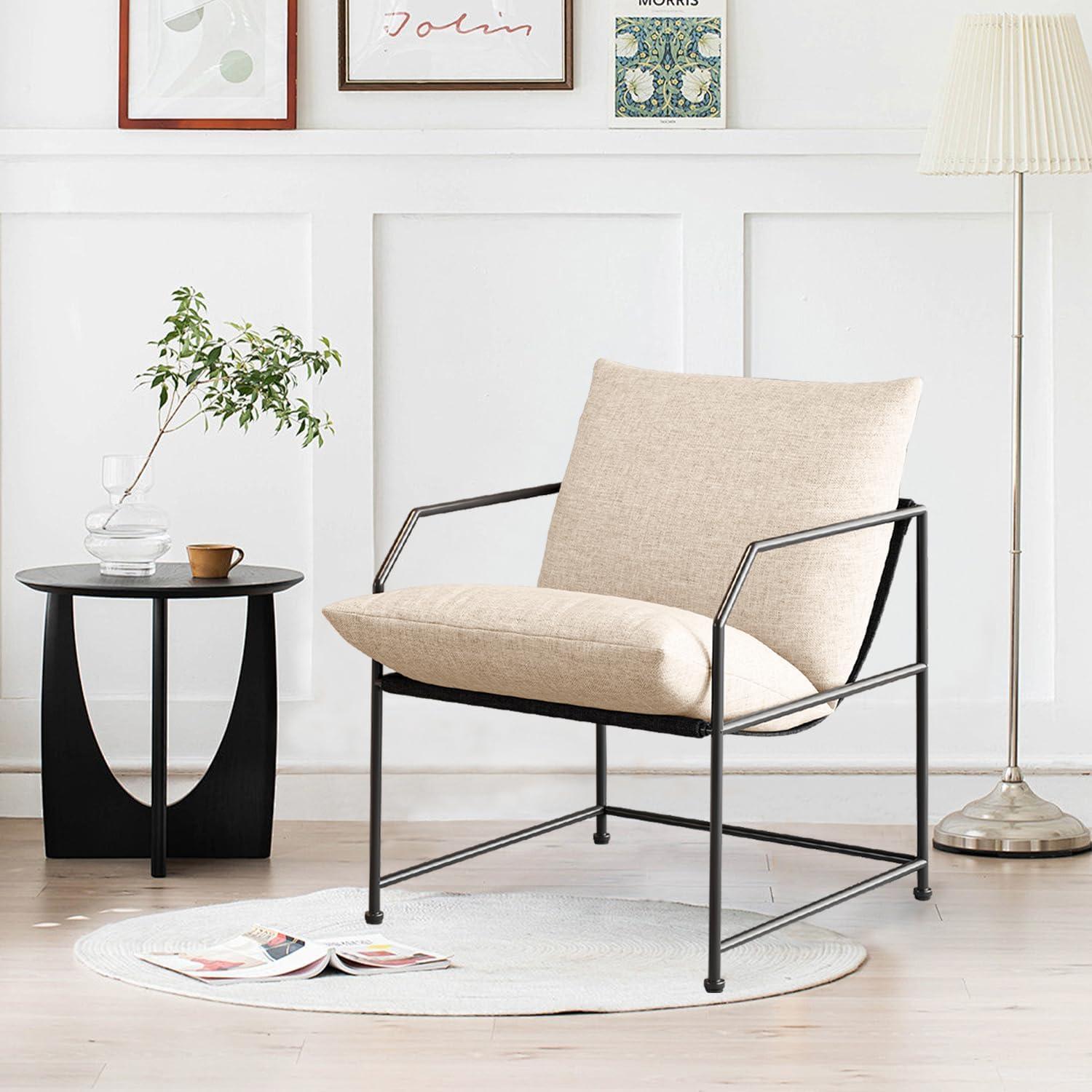 Aidan Sling Accent Chair/Metal Framed Armchair with Cotton Cushioning for Living Room (white)