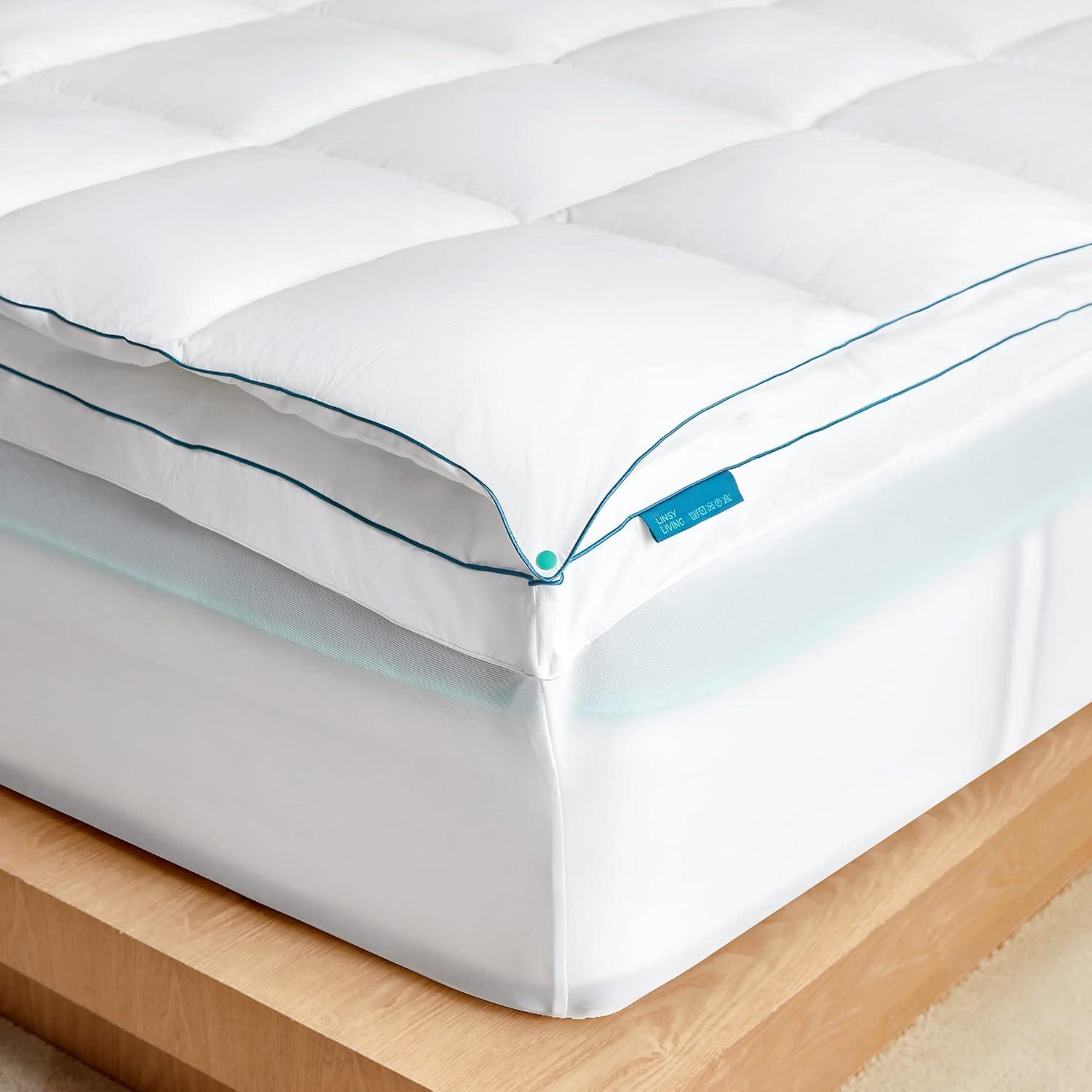 This mattress topper boasts a unique design with two plump layers,crafted to enhance comfort by providing thickness and softness for a sleep experience akin to “sleeping on a cloud.” Filled with 1200GSM spiral fibers and constructed with a buffle box design, this topper ensures a plush feel. The 400TC breathable polyester cover, certified safe and odorless through the OEKO-Tex test, enhances breathability and comfort. its deep pocket skirt can accommodate mattresses up to 16 inches tall, securing it in place and preventing slipping during the night.Though, despite its numerous advantages, there are a few caveats. Some users might find the dual-layer design to soft for their preferences,although it can be adjusted by removing one layer. Additionally, while the topper is machine washable, the care required might potentially be a consideration for busy lifestyles. Pros include enhanced comfort, ease of maintenance, and a 10-year warranty for peace of mind. Cons consist of its potential softness, which may not suit everyone, and the need for regular washing to maintain its quality. For an incredible upgrade to your sleep experience, check it out here: Shop Now.