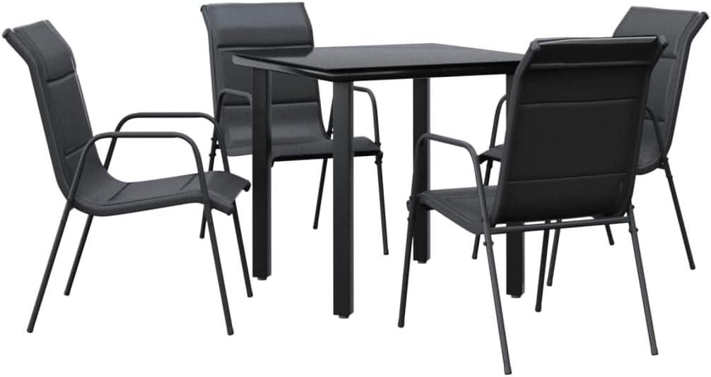 5 Piece Patio Dining Set Black Steel and Textilene 3200692, 3-7 Days Delivery