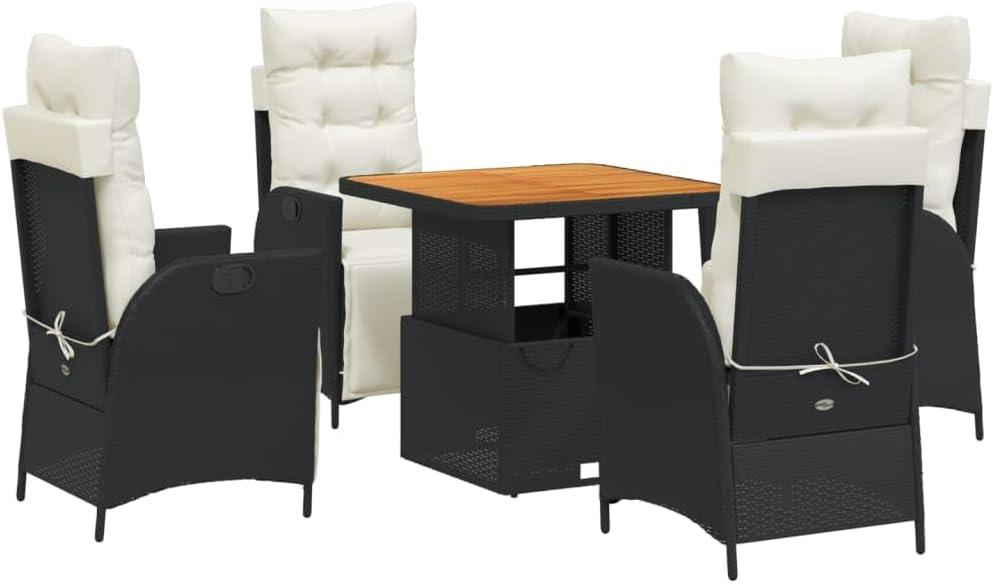 This stylish patio dining set is an excellent option for outdoor gathering, offering a blend of comfort and functionality. Made from durable black PE rattan and sturdy powder-coated steel, it withstands the elements while providing a sophisticated touch to your garden or patio. The versatile design includes reclining chairs with adjustable backrests and a lift-up tabletop that can easily transition from a coffee table to a dining table, making it perfect for both casual lounging and dining occasions. Each seat is generously cushioned for optimal comfort, enhancing your outdoor experience while offering removable covers for hassle-free cleaning.While this dining set has many benefits, there are also a few considerations to keep in mind. Pros include its weather-resistant materials, ease of maintenance, and stylish design that fits well in any outdoor setting. On the downside, assembly is required, which might potentially be challenging for some users. Additionally, the maximum load capacity per seat is about 242.5 lbs, so heavier individuals may need to take care. this dining set provides a balance of elegance and practicality, making it a popular choice for outdoor enthusiasts.