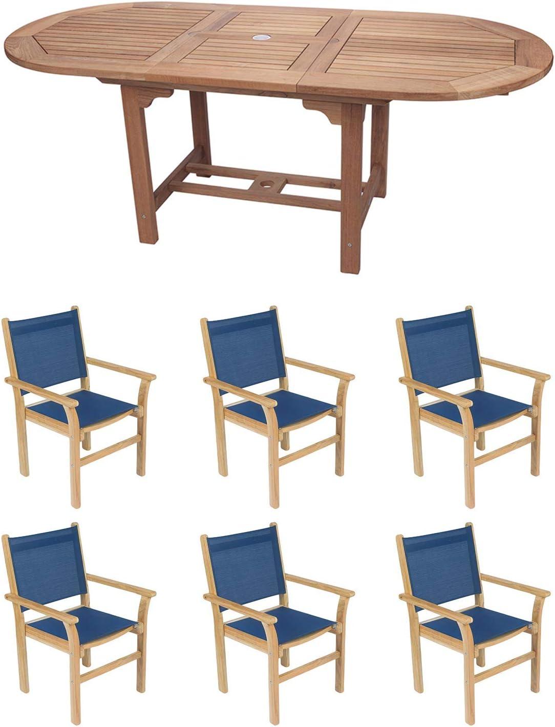 This outdoor dining furniture set combines elegance with practicality, featuring a durable expansion table crafted from premium plantation-harvested teak wood. Its natural high oil content provides exceptional resistance against outdoor elements, ensuring longevity and low maintenance.The innovative design allows the table to be extended from 72 inches to 96 inches with a convenient butterfly leaf, perfect for accommodating larger gatherings. The oval shape not only enhances aesthetic appeal but also enables comfortable seating for all your guests, creating an inviting atmosphere for outdoor meals and gatherings.