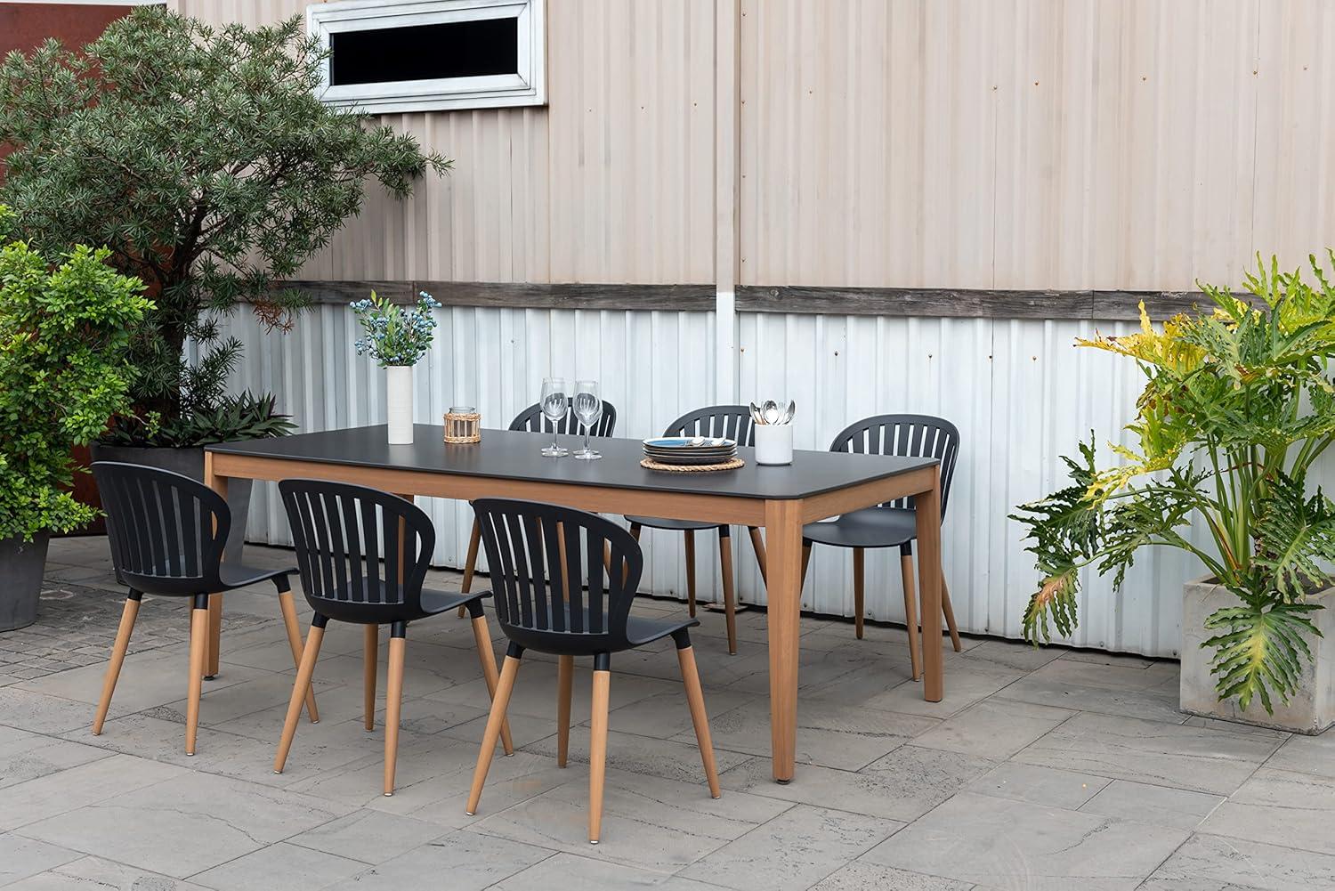 Accompanying the table are six Captiva stacking chairs, crafted from the same high-quality teak wood, providing a cohesive look. The sling design of the chairs distributes weight evenly,offering unmatched comfort for long hours of sitting,whether dining or relaxing. Their stacking capability ensures easy storage, making them a practical choice for those with limited outdoor space. however, users should consider the overall weight of the set, as teak can be heavy and may require assistance when moving. this ensemble balances style, functionality, comfort, and convenience, perfect for transforming your patio into a delightful dining space.