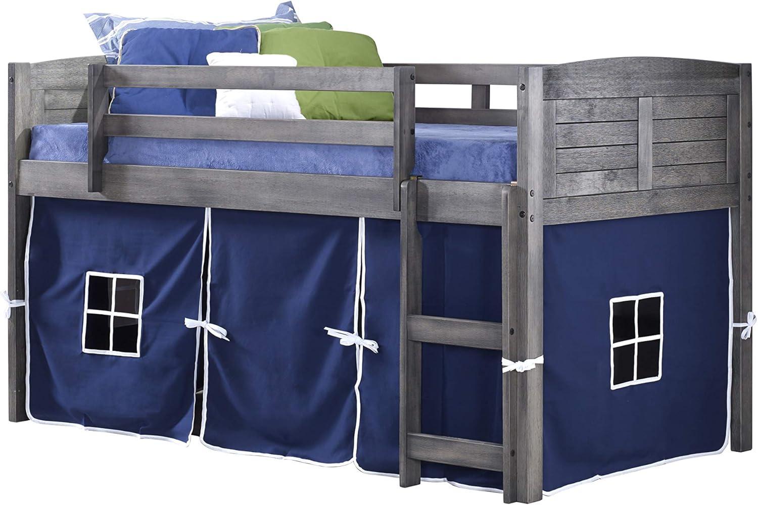 Donco Kids Louvered Low Loft with Blue Tent,Twin