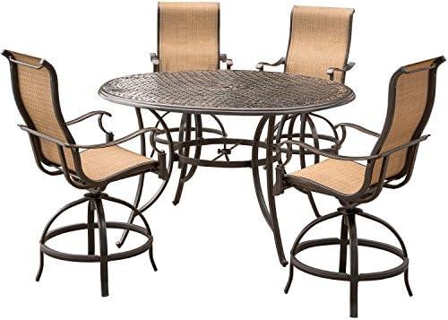 This high-dining set combines elegance with functionality, making it an excellent choice for outdoor gatherings. Featuring a 56-inch cast-top table paired with four counter-height swivel chairs, it provides ample space for meals and conversations. The rust-resistant aluminum frames ensure longevity, while the contoured sling fabric on the chairs offers superior comfort for extended dining sessions. The sleek, open-lattice design complements various outdoor aesthetics and seamlessly blends into any patio or backyard layout.