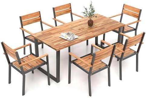 However, there are some considerations to keep in mind. While the stackable design of the chairs allows for easy storage, assembling the set may require some time and effort. Moreover, know that the natural variations of acacia wood mean each piece will exhibit its unique charm, but it may also lead to inconsistencies in appearance. Despite these minor drawbacks, this patio dining set is an excellent investment for transforming your outdoor space into a chic and comfortable dining area. Explore the option further and make your outdoor moments special by visiting this link: Check it out here!