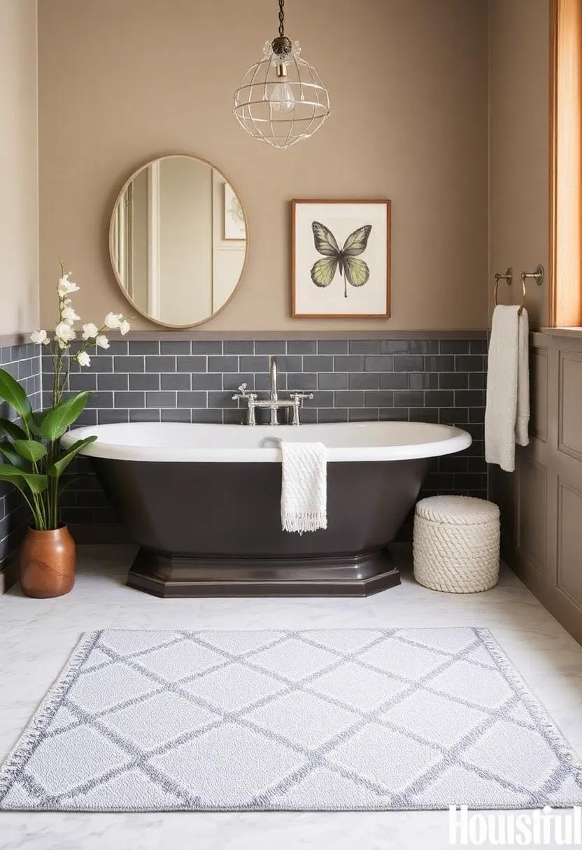 Contrasting Rugs with Bathroom Fixtures for a Striking Look