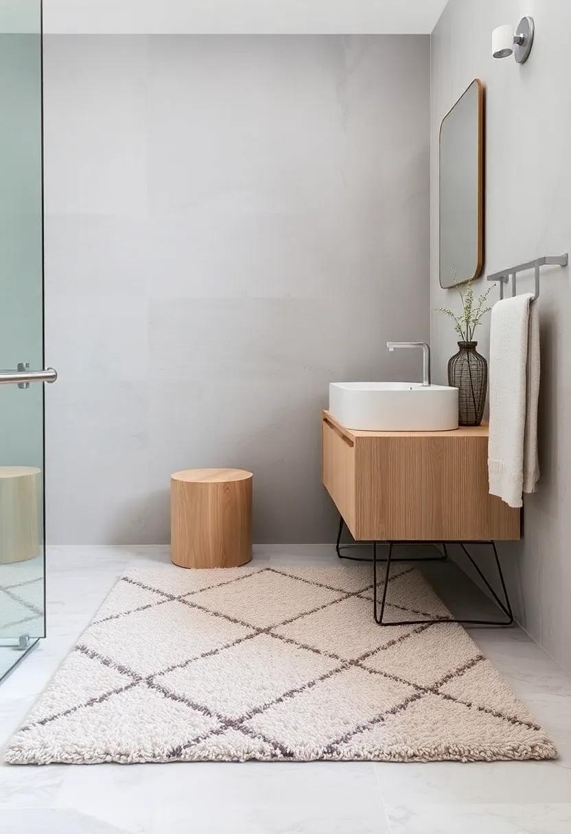 - Define Zones: Use rugs to delineate areas, such as separating the vanity from the shower space.