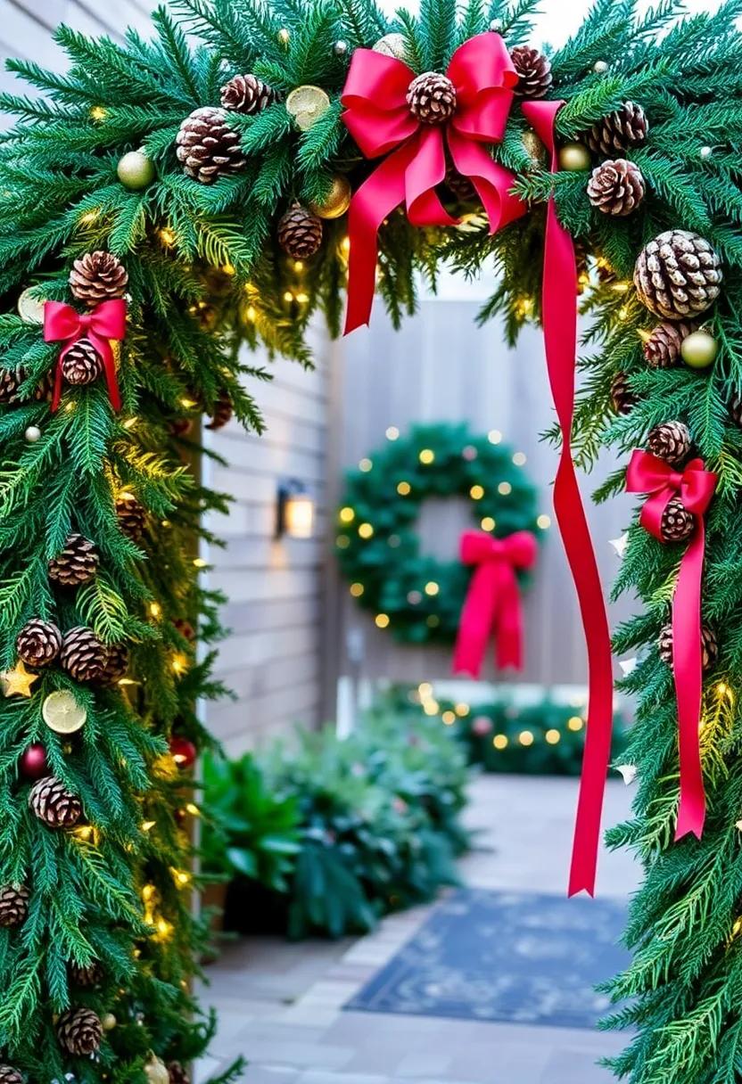 To create a stunning archway that exudes festive warmth, begin with a sturdy frame, ideally constructed from natural materials or rustic wood. Adorn this frame generously with evergreen branches for an enchanting touch that will instantly evoke the holiday spirit. Incorporate assorted textures by adding pinecones, which can be painted or left in their natural state for a more organic look. To enhance the visual appeal, intertwine twinkling string lights throughout the greenery, allowing them to cast a warm glow that beckons guests to enter. Don’t forget to include small embellishments, such as dried orange slices or cinnamon sticks, which infuse the air with seasonal scents and create a sensory experience that complements the visual feast.