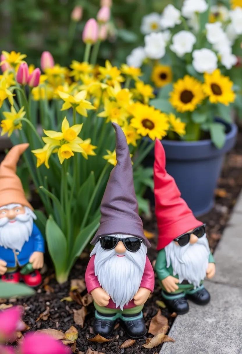 - Spring: Position gnomes among blooming tulips and daffodils, dressed in cheerful pastel hats to celebrate renewal and growth.