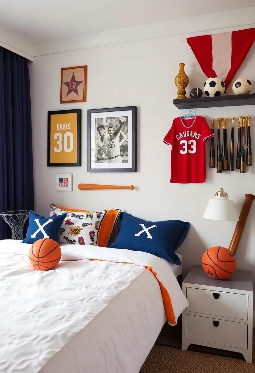 To elevate the room’s aesthetic, integrate banners or flags of favorite teams, perhaps pairing them with personalized trophies or medals displayed on shelves. Create a dedicated corner with a mini sports setup — think of a small basketball hoop or a soccer net where they can practice their skills. Use a palette inspired by their favorite team’s colors for the bedding and curtains, creating a cohesive look that channels both style and passion for sports.each of these elements serves not only as decor but also as a daily reminder of hard work and perseverance, empowering them to reach for their dreams. For further inspiration, explore creative ideas at Pinterest.