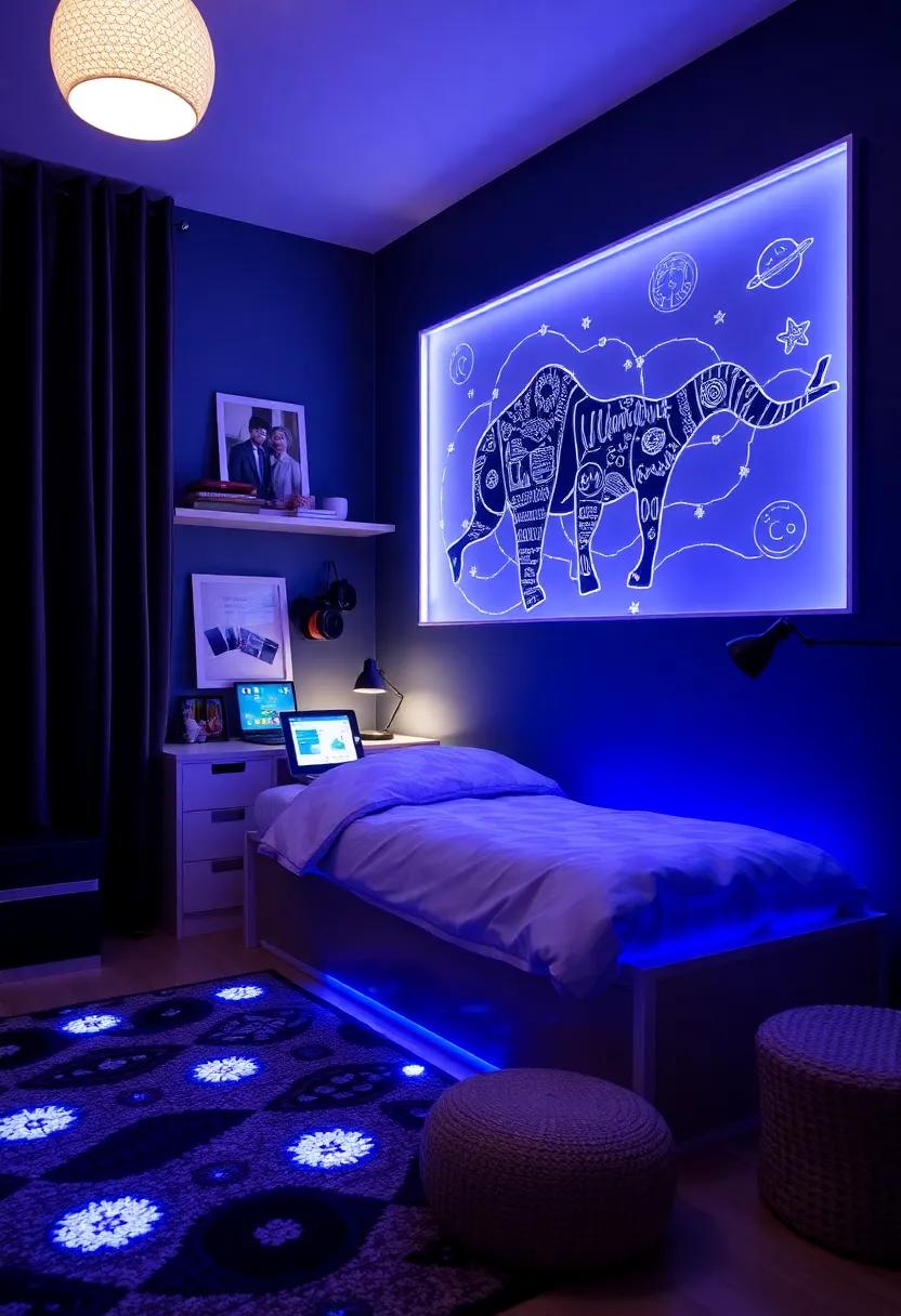 Integrating technology into a boy’s room can be both fun and functional, creating an environment that fosters creativity and learning. Consider incorporating smart lighting systems that can be controlled via a smartphone app. This allows for customizable moods, whether it’s bright and energetic during playtime or soft and calming during bedtime. An essential addition could be a digital clock that not only shows the time but also features a Bluetooth speaker, combining utility with entertainment. Rugs with integrated LED lights or wall decals that glow in the dark can enhance the aesthetic while adding a playful touch.