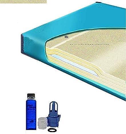 This comprehensive set provides everything needed for a satisfying waterbed experience, including a deep-fill mattress designed for use with full depth rigid side box frames, ensuring a robust sleeping surface with excellent support. The kit features a reliable vinyl safety liner to protect against leaks and a solid-state heater that maintains the ideal temperature for comfort. With a 7 Layer Mid-Body Support System, users can enjoy optimal spinal alignment and pressure relief while sleeping. Additionally, the Blue Magic Fill and Drain Kit allows for easy maintenance, accommodating straightforward filling and draining of your waterbed while integrating a conditioner for enhancing the water quality.