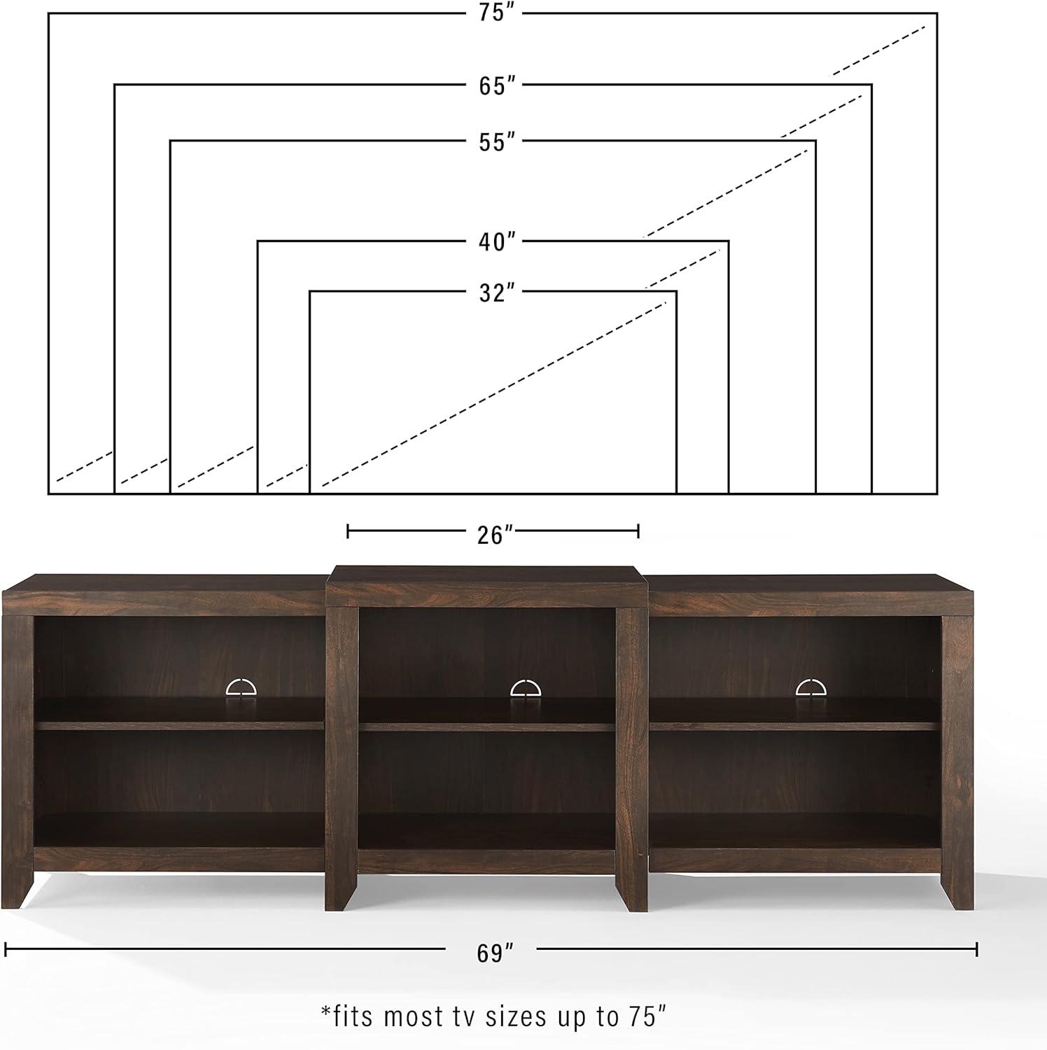| Spacious design: At 69″ wide, it comfortably holds TVs up to 75″ with room to spare for media devices. | Weight limits: Each shelf supports only 15 lbs, which means heavier equipment needs alternative placement. |