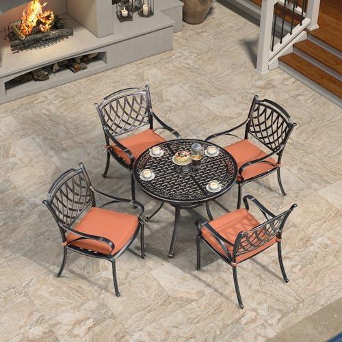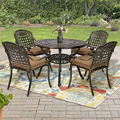 Elegant 5-Piece Patio Dining Furniture Set With Round Table and Cushions