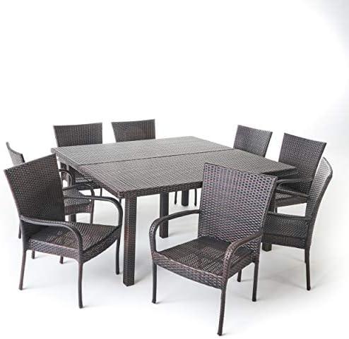 Christopher Knight Home Fiona Outdoor Stacking Wicker Square Dining Set, 9-Pcs Set, Multibrown