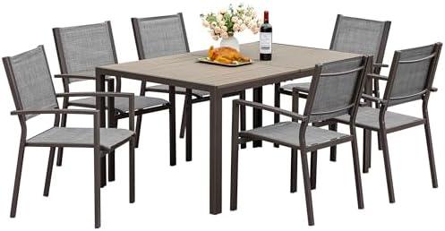 However, despite its robust construction, there are some considerations to keep in mind. The assembly may require several steps, potentially posing a challenge for those not experienced with outdoor furniture setups. Additionally, while the set efficiently accommodates six people, the size may feel restricted during larger gatherings. Nevertheless, the combination of aesthetic appeal, sturdiness, and practical features provides excellent value for outdoor dining experiences.
