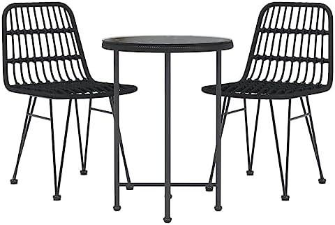 This outdoor dining ensemble includes a table and two chairs, designed to enhance your patio experience with its sleek black color and modern aesthetic. Crafted from poly rattan, a material renowned for its weather resistance, this set promises durability and stability for long-term use. The sturdy steel frame adds to its robustness, making it well-suited for various outdoor environments. Additionally, the dining chairs come equipped with comfortable backrests, providing an excellent sitting experience that’s ideal for leisurely meals or coffee breaks.