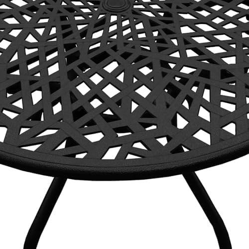 This elegantly designed patio dining set is crafted from durable aluminum and features a powder-coated, UV-resistant finish, ensuring longevity in various weather conditions. Its medium-sized round tabletop has a convenient umbrella hole with a diameter of 2.36 inches, making it ideal for adding shade during sunny days. The included foot glides protect your surfaces from scratches, offering peace of mind while you enjoy outdoor dining, whether on a patio, deck, balcony, or backyard. The set’s manageable weight allows for easy repositioning, while its stability prevents it from being easily blown away in windy conditions.