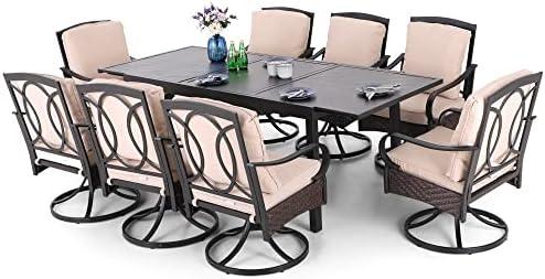 Expandable Outdoor Dining Set for 8 with Swivel Chairs