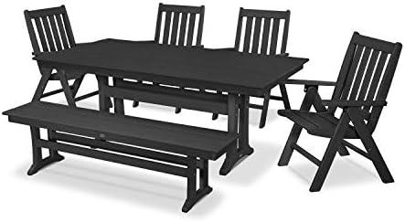 Polywood Vineyard 6-Piece Farmhouse Folding Dining Set with Bench (Black)